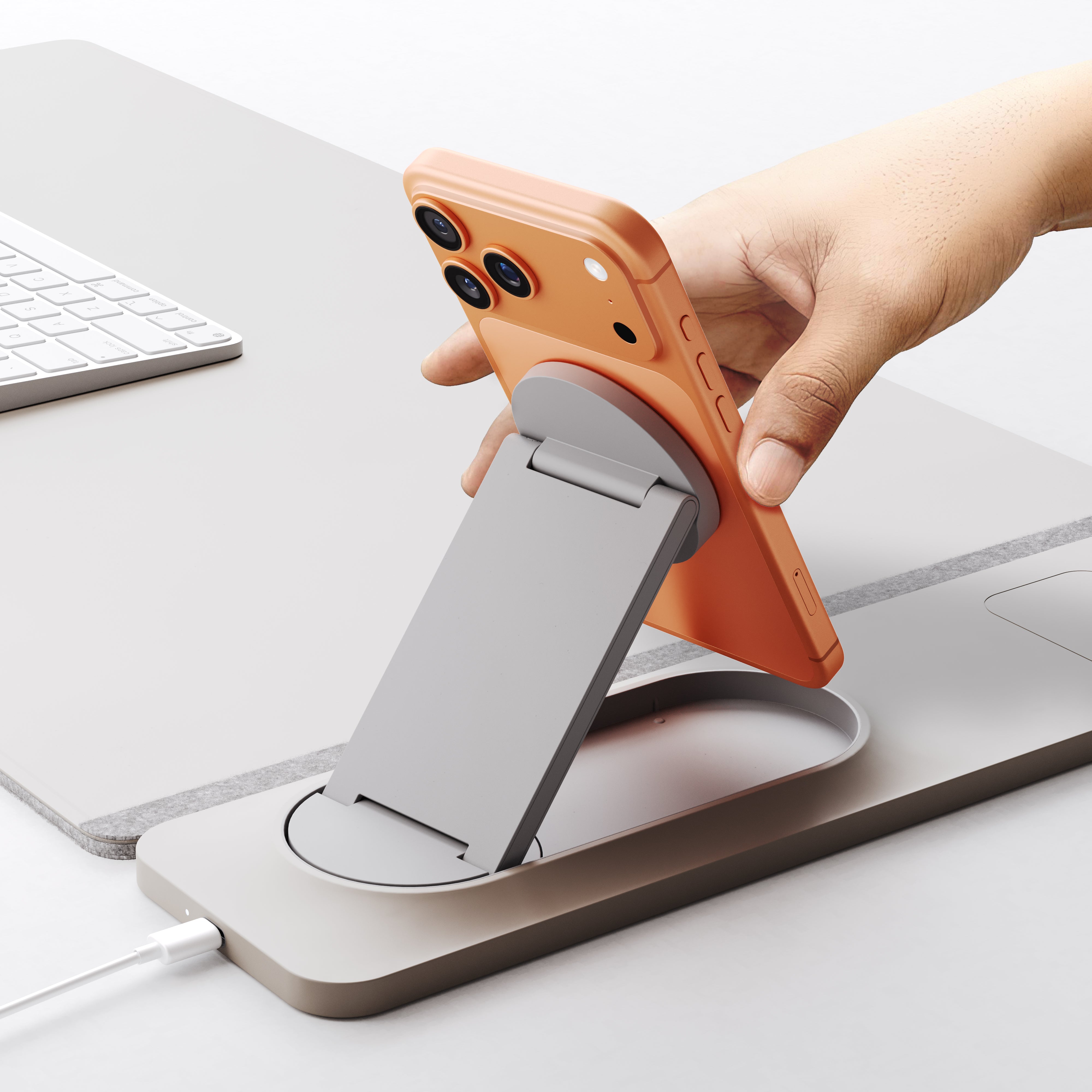 Your phone stand features an inbuilt pull-out tab that makes first-time user experience simple and intuitive. You can tilt the stand and rotate its bi-directional base to get your preferred view of your phone screen. The phone stand includes the magnetic charging zone, so you can view your screen hands-free. This is convenient for video calls and other hands-free screen-based activities.