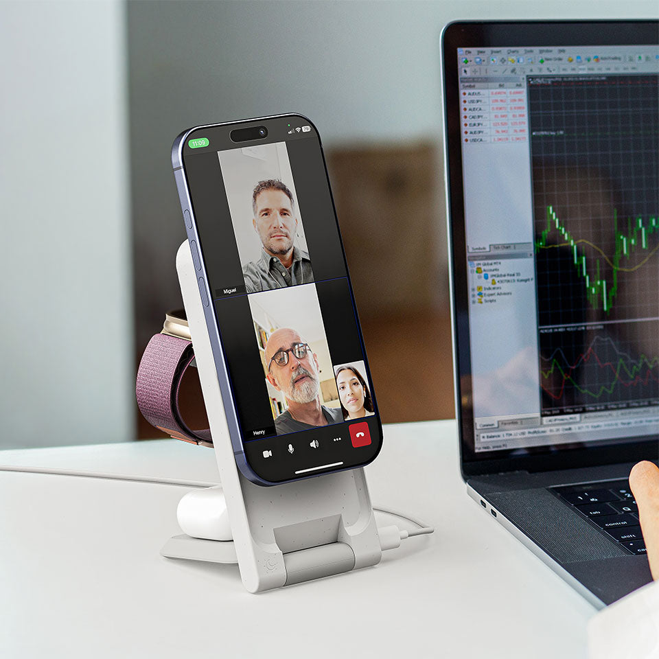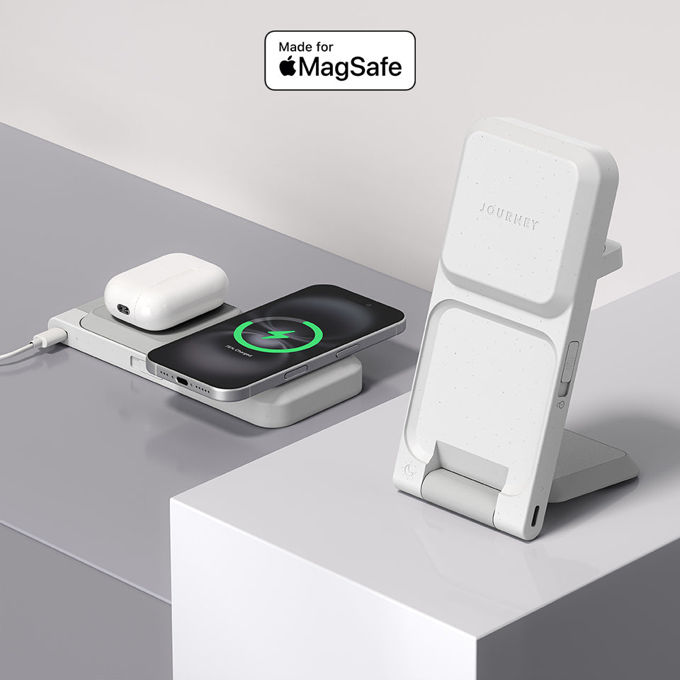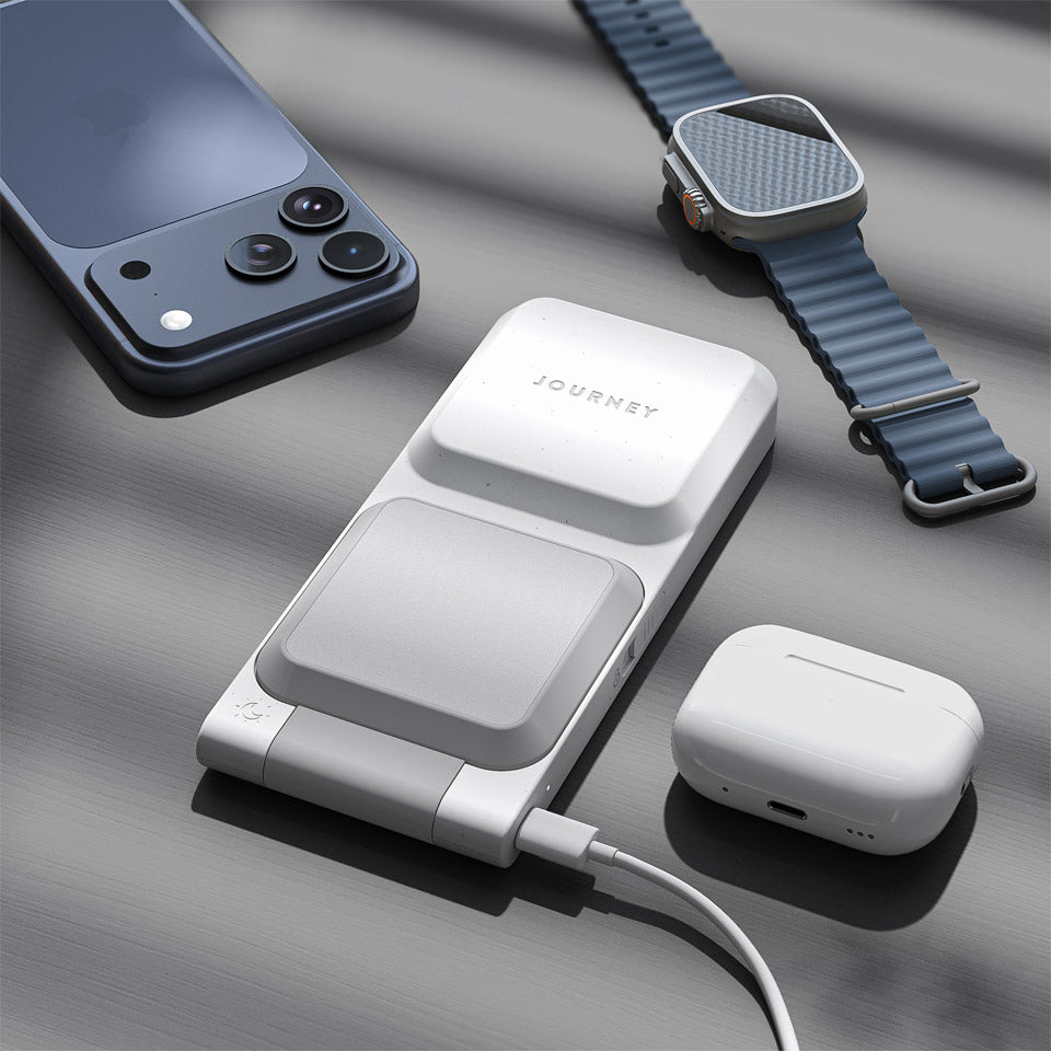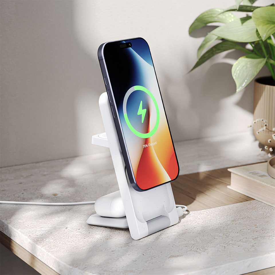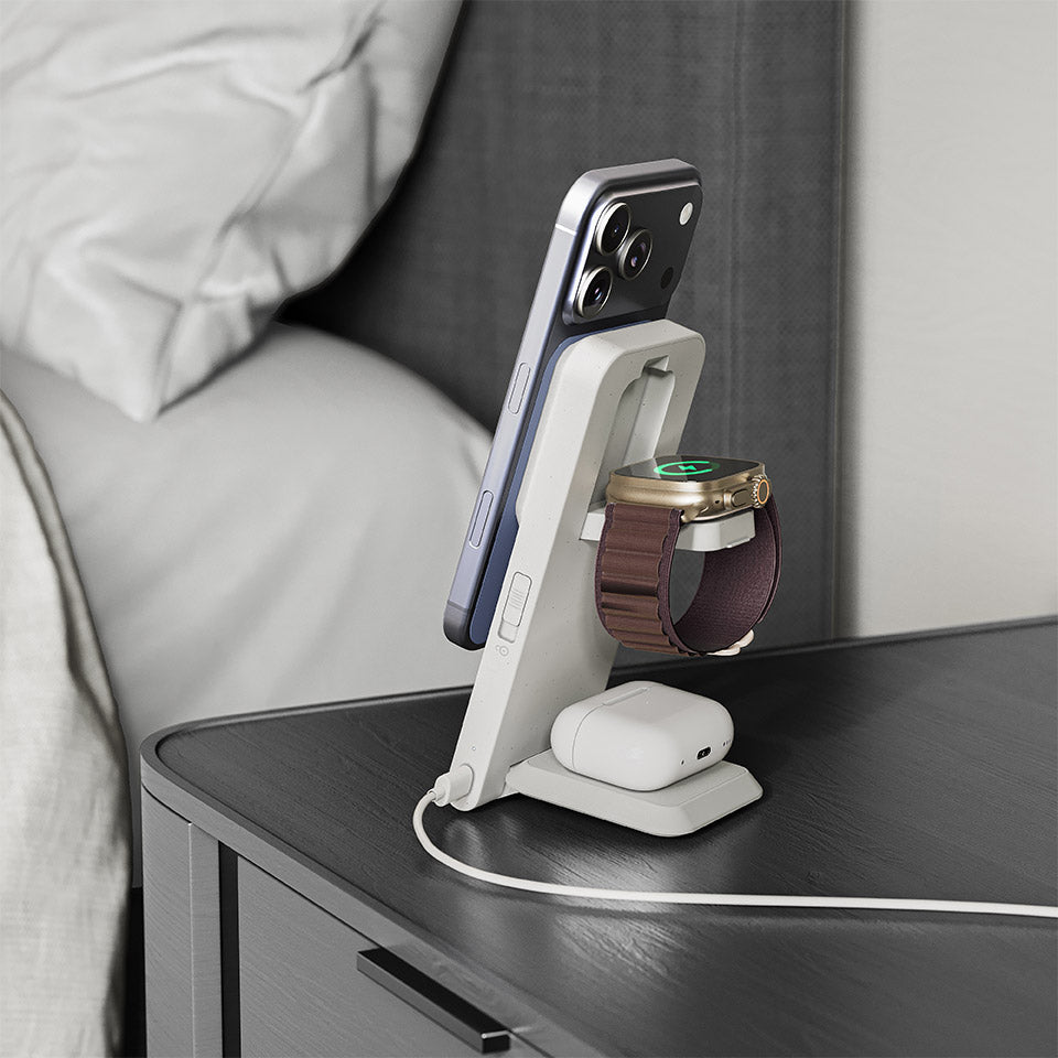 Qi2 and Apple certified for fast, reliable wireless charging of all your Apple essentials—works with iPhone 12 and newer, every Apple Watch, and any wireless-charging-enabled AirPods.