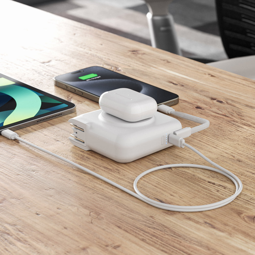 The Axie is a 3-in-1 wireless and USB-C charger/power bank. It is designed to make busy on-the-go charging easy for international travelers and commuters.