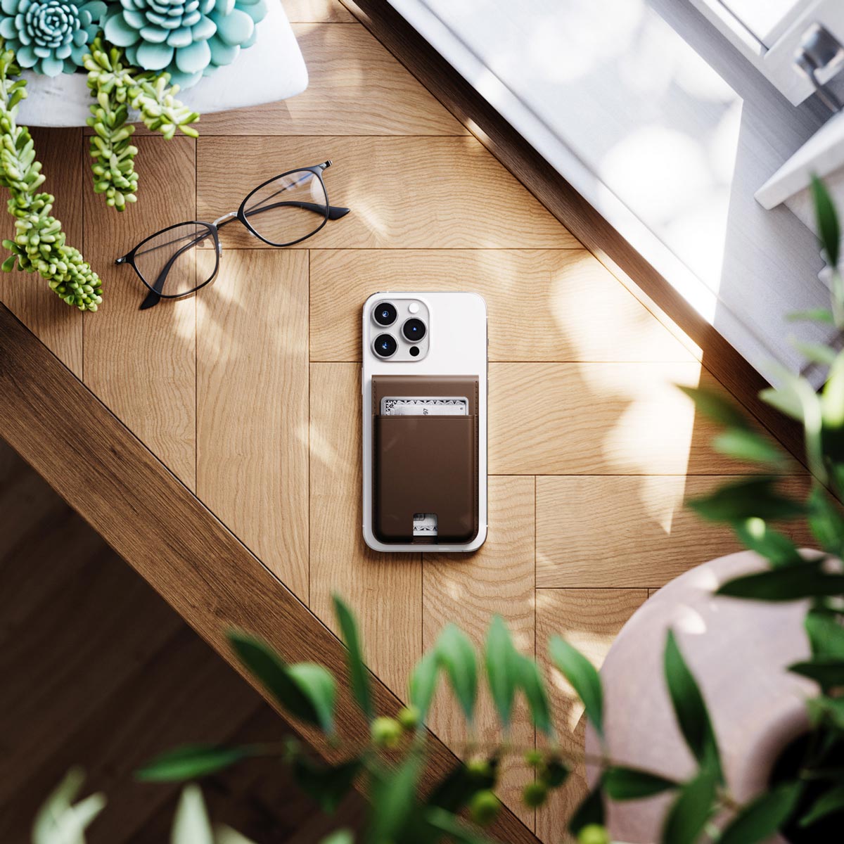 EZMO is a slim, vegan leather wallet that attaches magnetically to your iPhone and stores up to 5 cards. It also doubles as a stand, so you can prop up your phone for hands-free viewing. Made with high-quality materials, this wallet is both stylish and functional.