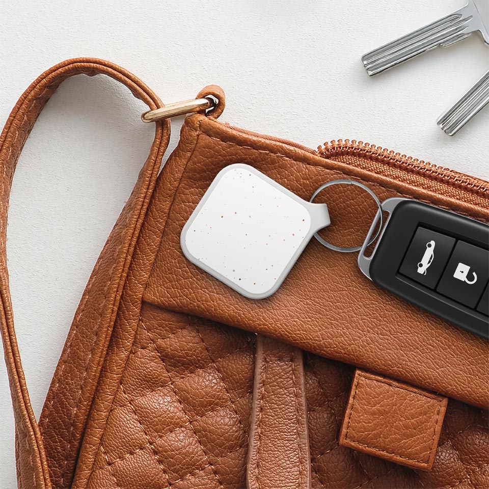 A pocket-friendly fob for Apple and Android device users to quickly find keys, bags, and other attachable valuables.