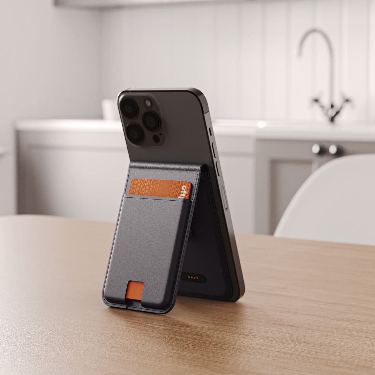 LOC8 Finder Wallet and Stand With Money Clip is a little wallet with a lot of features. iPhone users can find a missing LOC8 with its built-in tracker and Apple Find My network compatibility. Store five essential cards in precision-designed pockets, and keep quick cash handy under the inbuilt money clip. The LOC8 features RFID technology to protect your cards’ valuable data from skimmers, and it doubles as a stand for your phone. Stay connected, organised, and worry-free.