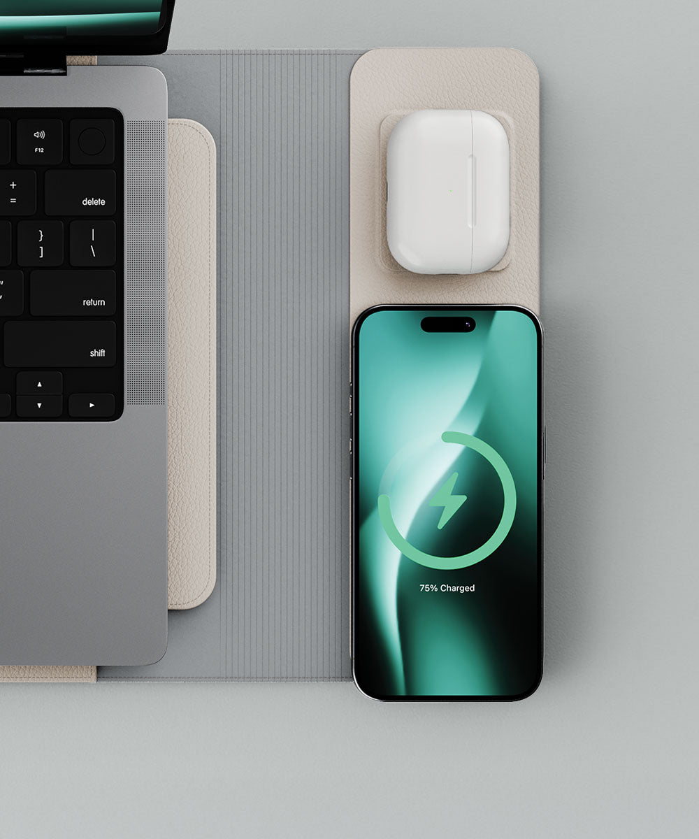 Introducing the NEXA 4-in-1 Laptop Sleeve with Wireless Charging (Gen 2) — the ultimate fusion of style, protection, and versatility. Crafted with vegan leather and soft-quilted lining, it shields laptops from everyday bumps. With dual wireless charging — power your phone and earbuds — plus a magnetic flap for quick access. Its sleek, slim profile converts into a desk-mat or mouse-pad surface, with expandable sides to fit 13- to 16-inch laptops. Perfect for mobile professionals who demand function & flair.