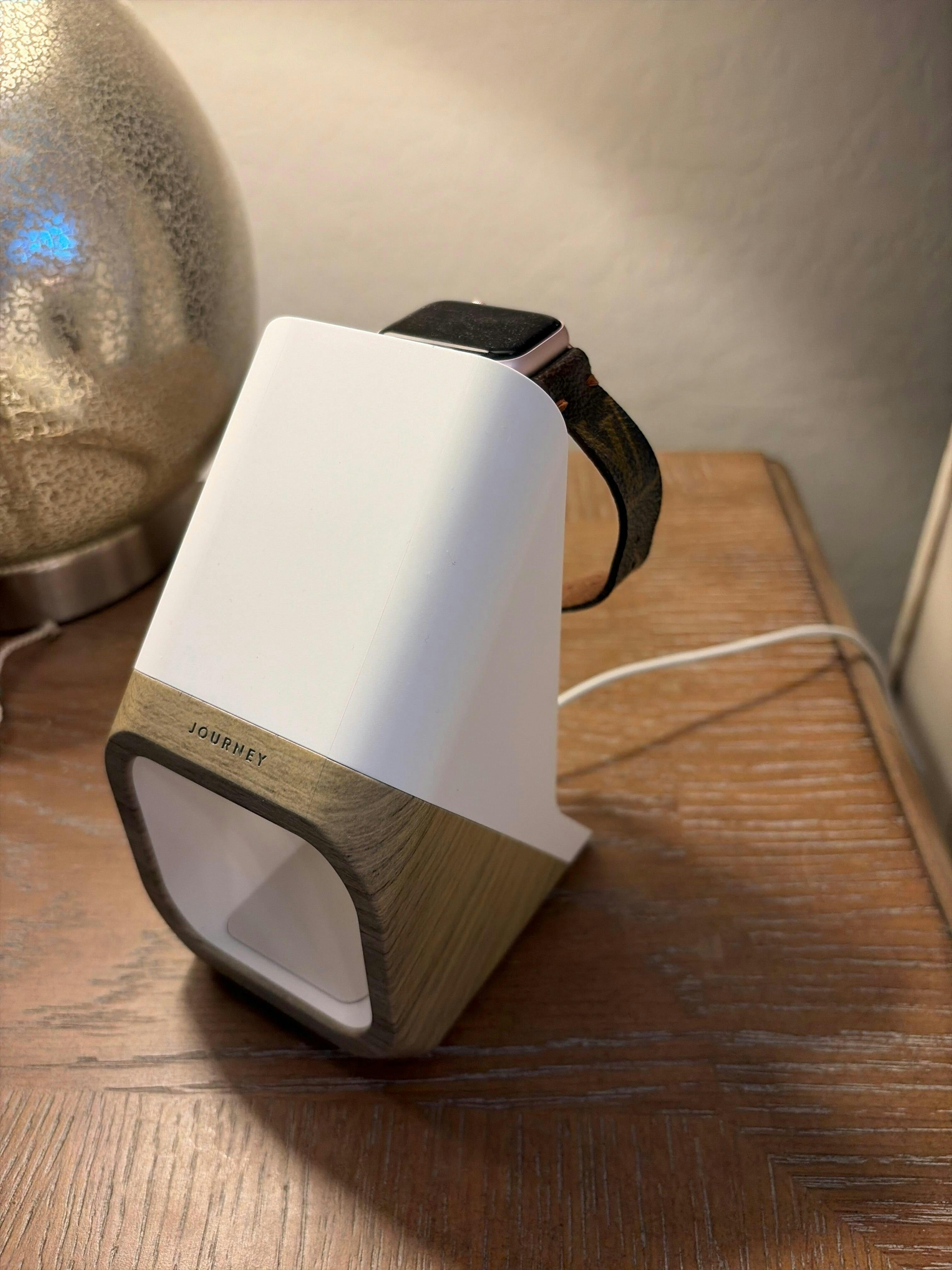 NOVA is a sleek 3-in-1 charging station that combines cutting-edge technology with home decor elegance. Designed to fast charge your iPhone, Apple Watch, and AirPods simultaneously, NOVA blends seamlessly into any space with its unique, stylish design. Say goodbye to cluttered cables and hello to convenience with this powerful, all-in-one charging solution.