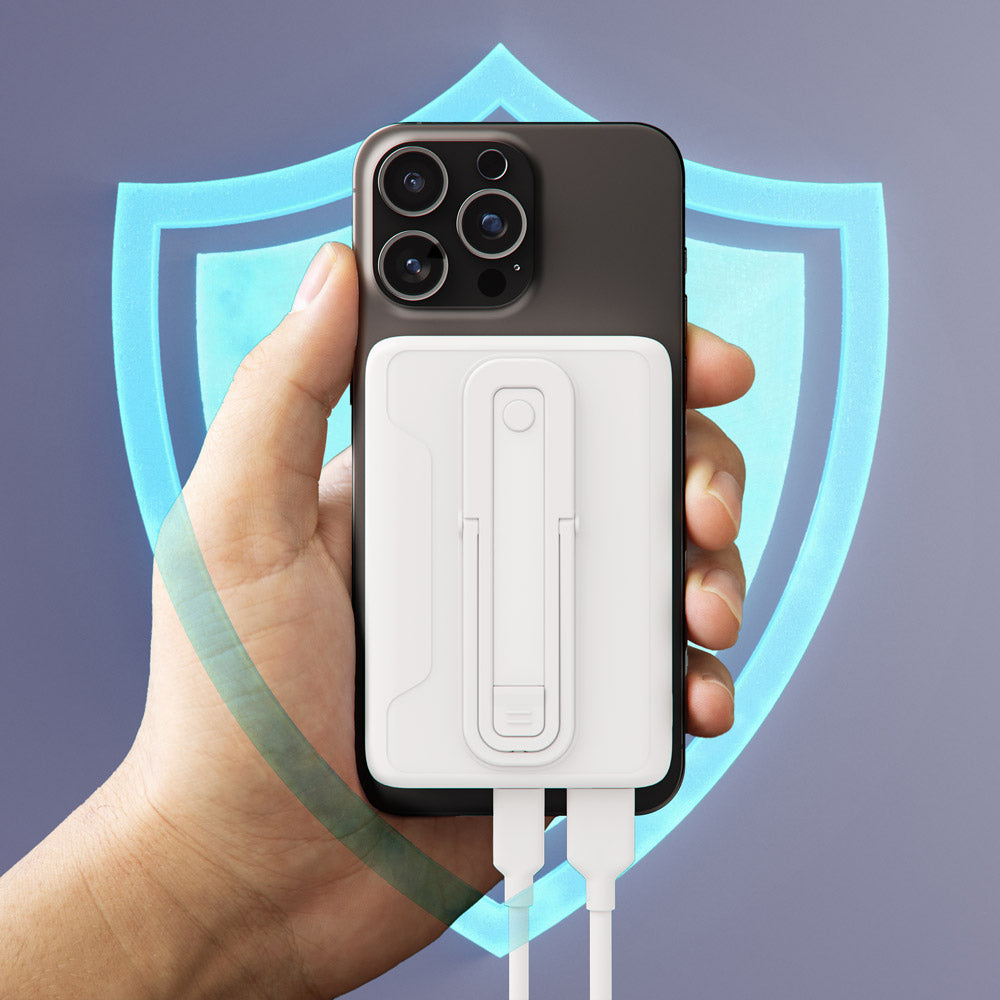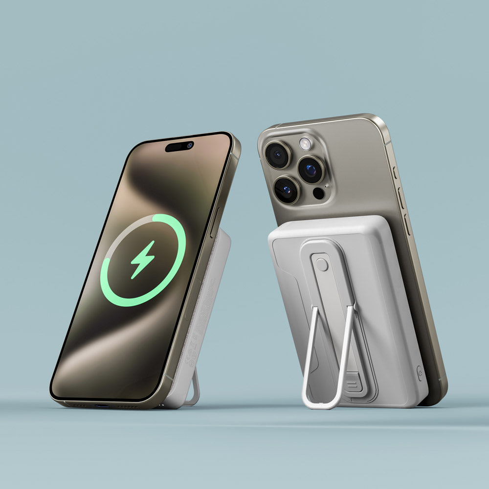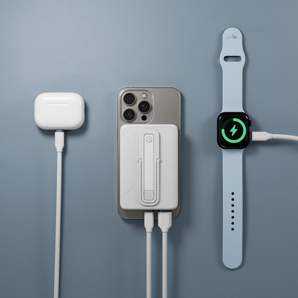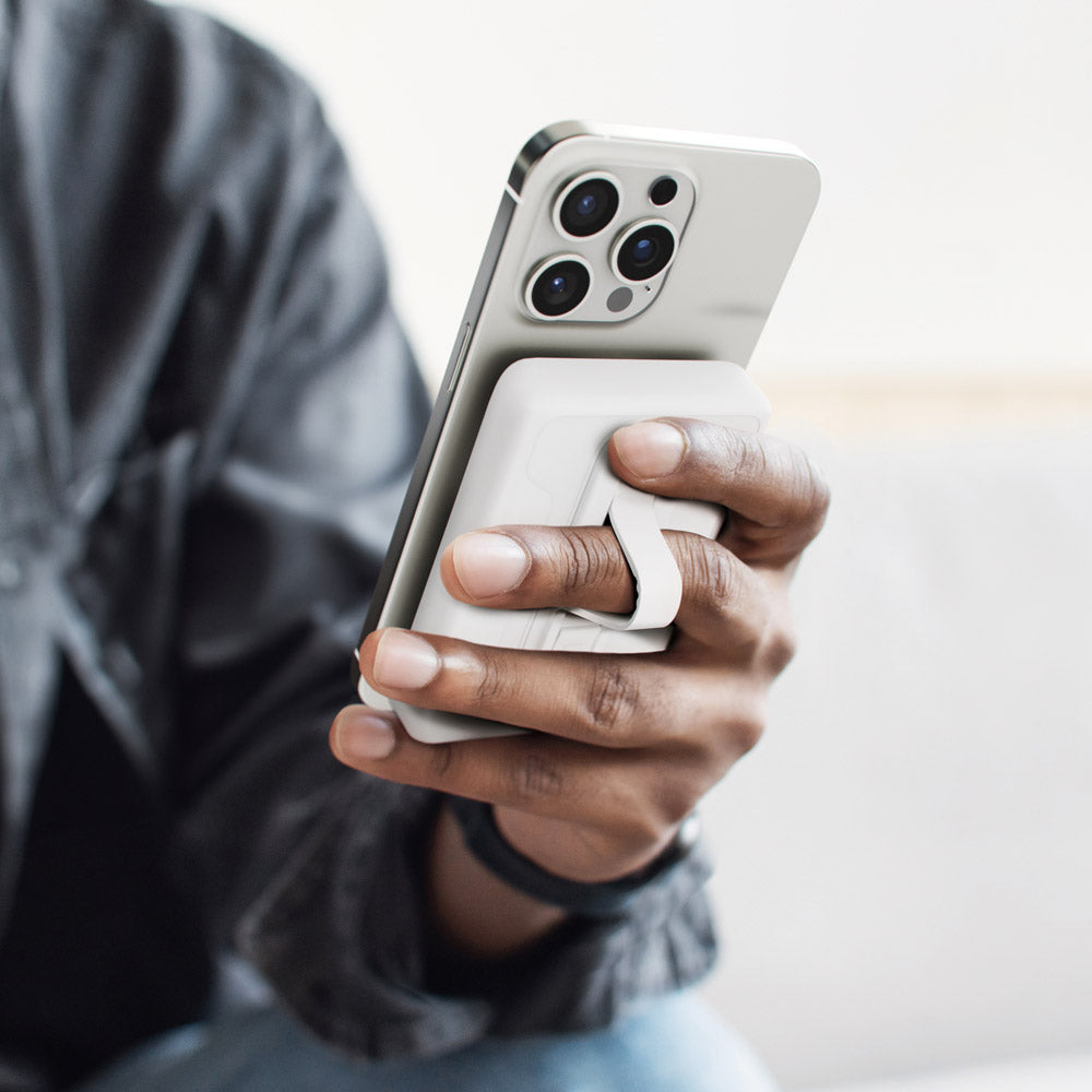Elevate your on-the-go charging with our 10,000mAh MagSafe Power Bank. Featuring a built-in finger loop and kickstand, this sleek accessory ensures convenience and style in one. Stay powered up and connected effortlessly.